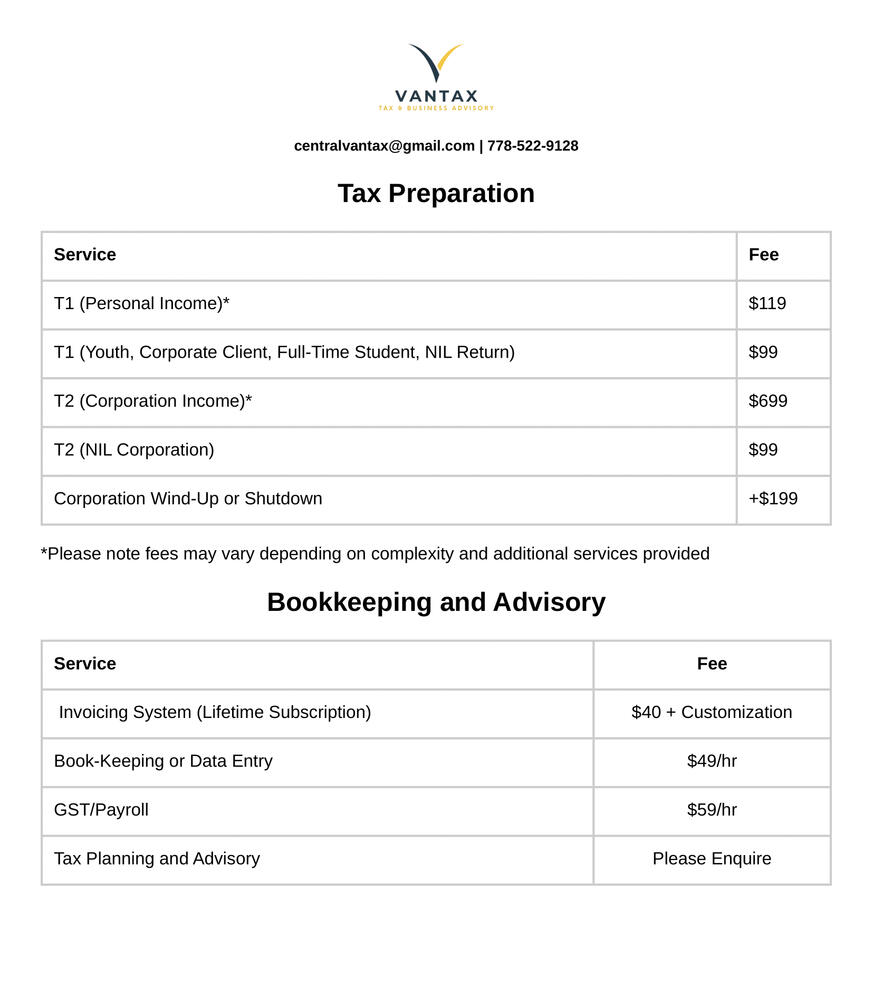 At VanTax, we provide personalized tax advice tailored to your unique personal situation at an affordable price.Unlike H&R Block or TurboTax, we prioritize building long-term relationships with our clients. We strive to ensure you receive not just a service, but honest support and guidance.Let us take care of the headache, so you can forget about T1s, T4s, T2125s, or W-8BENs, and focus on the work that truly matters.The best part? Our fees are tax-deductible